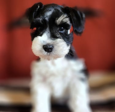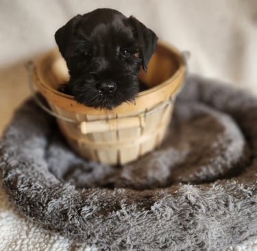 Unfortunately, the days of picking puppies after they are ready are gone. But I try to implement a fair deposit pay forward in that case. Puppies are picked at birth according to color and gender. At which time you can opt for all natural tail or docked. As the puppy grows, I share photos weekly. Then allow visitors at 5 weeks or older when they really get cute. Puppies' personality develops way slower than most folks realize. So it's after 6 weeks that we start to notice the tails wagging, the bossy ones, the shyer ones, the talking ones, etc. By 8 weeks, we know who they are personality wise. Fortunately, schnauzers are pretty predictable. Cute, naughty comedians in beards 🤣.